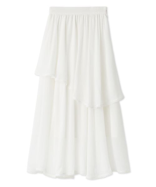 【ニットスタイルに軽やかさをプラスするバリエーションティアードスカート】【Design/Styling】優雅に波立つフリルがエレガントな、総レースや箔プリントを施したシフォン生地、コットン見えする軽やかなシフォン生地など3種類の異なる生地でお作りしたバリエーションティアードロングスカートがお目見え。アシンメトリーなティアードデザインがトレンド感のある立体的なドレープ感を生み出し、軽やかな仕上がりに。柔らかな素材感で、シーズン問わずにご着用いただけるアイテムです。サイドのファスナーで着脱いただけます。背中側のウエスト位置にはゴムシャーリングを施し、フィット感を出しました。同色・同素材でお作りしているバリエーションフリルブラウス(SWFB261006)とセットでご着用いただけます。【Fabric】レーストリミングを施した柔らかなコットン風味の無地のホワイト、繊細なフラワーレース素材を全面に使用したロマンティックなアイボリー、ホワイトベースにドット見えするシルバーの箔プリントを施した華やかなシルバーの3色展開でお作りしました。WHTのみサステナ素材を使用しています。※商品画像はサンプルの為、レースの柄が、お届けの製品と多少異なる場合がございますので、予めご了承ください。【Recycled Polyester】使用後のポリエステル商品を粉砕し、糸や生地にアップサイクルさせた「POST CONSUMER」、工場での製造過程で発生する端切れや糸くずなどを使用する「PRE CONSUMER」をSNIDELでは使用しています。透け感;ややあり裏地;あり伸縮性;なし光沢感;なし生地の厚さ;やや薄手【おすすめ骨格タイプ】■骨格ストレート■骨格ウェーブ■骨格ナチュラル※照明の関係により、実際よりも色味が違って見える場合があります。またパソコン・スマートフォンなどの環境により、若干製品と画像のカラーが異なる場合もございます。予めご了承ください。商品の色味は、商品単品画像をご参照下さい。 ※商品