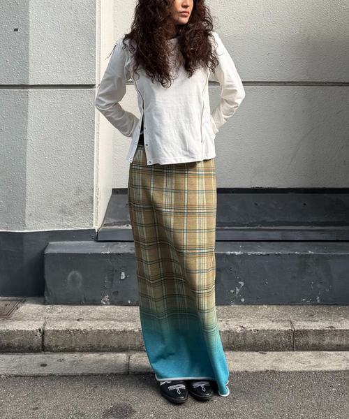 【2025 AW】 Oriens JOURNAL STANDARD オリジナルプリントを使用した、裏毛素材のスカート。 チェック柄にグラデーションを重ねたグラフィックが印象的で、スタイリングの主役になる一枚です。 裾は切りっぱなし仕様でラフな雰囲気に。 ストレートシルエットながら、カットソー素材で着心地の良さも兼ね備えています。 ********************** 透け感:なし 裏地:なし 伸縮性:ややあり 光沢感:なし 生地の厚さ:普通 ********************** <気になったアイテムは『お気に入り』がおすすめです!> お気に入り登録した商品の再入荷・在庫情報・値下げなどの通知を受け取ることができます。 <Oriens JOURNAL STANDARD 公式Instagramで最新情報をご覧くださいませ!> ※取り扱いについては、商品についている品質表示でご確認ください。 ※照明の関係により、実際よりも色味が違って見える場合があります。 またパソコン・スマートフォンなどの環境により、若干製品と画像のカラーが異なる場合もございます。 ※商品の色味は、商品アップ画像をご参照ください。 本体:手洗い可能
