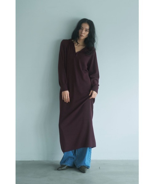 薄手で暖かいニットワンピース。フード付きでカジュアルな雰囲気がありながらIラインで甘すぎず。胸元はフックで留められるので深Vにもできます。タートルのインナーを着ても可愛いです。パンツを合わせても1枚で着てブーツでも。1枚でさらっと着られるのでデイリーに使えます。薄手なのに暖かく、秋から春先まで長く着られます。真冬に厚手のアウターの中でも着膨れずすっきり着られるのもポイント。Iラインですが幅のあるIラインなのでリラックス感のあるシルエットになっていて体型を拾いません。ロング丈なのでバランスが取りやすいのも◎[着用時期]9〜3月(約20℃以下)[透け感]なし[生地の厚み]薄手[ストレッチ]あり[生地のやわらかさ]やわらかい[生地の特徴]ハイゲージの目の詰まったニット[落ち感]あり[着用ジワ]袖や座った時のナチュラルなシワ[ポケット]無[身長]全ての方に(身長によって着丈が変わります)※感じ方には個人差がございますので気になる部分がありましたらお気軽にお問い合わせください