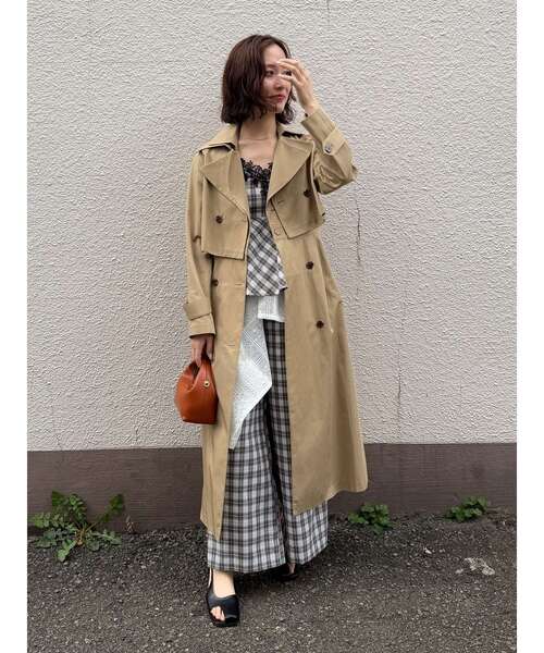 いろんな着こなしが楽しめる万能トレンチ ■デザインコメント ロングトレンチコート、ショートトレンチコート、トレンチワンピースと様々な着回しが可能な1着。 程よい張り感のあるコットン混のツイル素材を使用。 衿を2枚重ねて着るデザインも旬。 ■スタイリングポイント ・ショートでも、重ね着してロングで着るのもおすすめ ・デニムパンツでカジュアルに、スカートとのコーデでフェミニンにも◎ 【修正コメント】 ウエスト2センチほど大きくなります。 ワンピースのアームホール三つ折り始末に変更します(見返しなくなります)裾のぶくつき改善します。 --------------------------------------------------- 透け感:なし 裏地:あり 生地の厚さ:普通 洗濯:× 伸縮性:なし ジップ:なし ポケット:あり --------------------------------------------------- ■STAFF着用コメント STAFF/167cmSサイズ着用 トレンチコート・ショートコート・ジレ・トレンチワンピースと複数の着こなしが楽しめます! 今回はショートコートとしての着こなしを✔️ これを羽織れば目線がぐっと上がってスタイルアップ効果抜群◯ ハイウエストボトムスや、ワンピースとの相性抜群です STAFF/157cm Sサイズ着用 ロングトレンチコート、ショートトレンチコート、トレンチワンピースと様々な着回しが可能な1着です♥ 程よい張り感もありショートでも重ね着してロングで着るのもおすすめです〇 【 ZOZOTOWNでお買い物を楽しむ便利機能 】 ♡商品のお気に入り登録 完売カラーの再入荷時、ラスト1点の時、セール開始時にお知らせします。 予約アイテムが入荷して通常販売になった時もお知らせしてくれます! その他お得な通知も盛りだくさんです。 ♡ブランドのお気に入り登録 新商品や再入荷、セール情報など、いち早くブランドのお得な情報を受け取ることができます。 ぜひご活用ください!