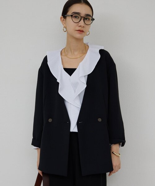 \大人気ジャージーシリーズ!/イージーケアと抜群の着心地に定評のあるノーカラージャケット●カーディガン感覚でさらりと羽織れるノーカラージャケット。●生地に適度な肉感とハリがあり、すっきりとした上品な印象。●今シーズンはさらにインナーを選ばないサイズ感と、洗練された印象のゴールドボタンへとアップグレード。●軽量でシワになりにくく、旅行や持ち歩きにも便利なライトアウター。■洗濯:手洗い可■透け感:なし■裏地:なし▼同シリーズ品番GGZ1052107A0008/ジャージードルマンジャケットGGZ1052207A0002/ジャージーテーラードジャケットGGZ1052202A0002/ジャージーテーパードパンツGGZ1051202A0002/ジャージーワイドタックパンツGGZ1061202A0001/ライトジャージーテーパードパンツGGZ1061202A0002/ライトジャージーワイドパンツ※画像の商品はサンプルです。実際の商品と仕様、加工などが若干異なる場合があります。また、生産過程上の都合により、洗濯表記や混率、サイズスペック等が多少変更になる可能性がございます。予めご了承ください。※トップの画像は、光の具合で色味が違って見える場合があります。◆気になる商品は「お気に入り」登録を◆ハートマークをクリックし、お好きなカラーを選んでお気に入りに登録すると入荷情報や残り1点の通知、完売カラーの再入荷、セール情報などを受け取ることができます。