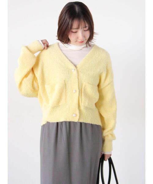 ブークレ素材のやわらかな風合いと、パール調ボタンがさりげないアクセントになるVネックカーディガン。 軽やかな着心地でデイリーに取り入れやすく、羽織りとしても一枚着としても使える万能な一枚です。 デニムやワイドパンツと合わせるだけで大人カジュアルにまとまり、ラフなスタイリングにも自然と馴染みます。 程よい存在感があり、普段のコーデに表情をプラスしたい時にも活躍します。 ※商品画像は、撮影環境やお客様のご利用のPC・スマートフォンのモニター環境などにより実物と色味に差異がある場合がございます。 ★《お気に入り登録》でお得な情報をGET★ ① 商品ページ内のハートマークをクリック! ② 以下通知が受け取れます! 「再入荷」「ラスト1点」「特別セール」etc.. \ブランド、ショップのお気に入りも是非!/