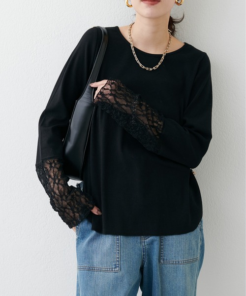 【2026SS LARUTA】 レースドッキングロンT ■Design シンプルさの中に、袖の切り替えレースで華やかさをプラスしたカットソー。 ややゆとりのあるシルエットと、身体のラインを拾いすぎない落ち感が特徴。 袖丈を長めに設定することで、レイヤードの際に袖口からさりげなくレースが覗くこだわりのデザイン。 一枚で着ても、レイヤードしてもバランスが取りやすく、シーズンを問わず活躍します。 無駄を削ぎ落としたデザインだからこそ、素材感とシルエットの美しさが際立つアイテムです。 ■Styling チュールスカートやサテン素材のボトムスと合わせることで、カジュアルすぎない抜け感のあるスタイリングに。 ジャケットやベストのインナーとしても使いやすく、袖口から覗くレースデザインがさりげないポイントになります。 デニムやスラックスと合わせたミニマルな着こなしもおすすめで、デイリーからきれいめまで幅広く対応します。 ■Fabric 柔らかく肌なじみの良い素材を使用。 落ち感のある滑らかな肌あたりです。 ====================== 透け感:ややあり(淡色) 裏地:なし 伸縮性:あり 光沢感:なし 生地感:柔らかく軽やかな素材感 ====================== ▼ コンセプト <LARUTA> シンプルだけど洗練されていて、それでいて自然体。 着飾るよりも着ていてリラックスできる、そんなお洋服を纏いたい気分。 ※着用、お取り扱いの際は、商品に付いている品質表示とアテンションタグを必ずご確認ください。 【お気に入り登録でお得な情報がいっぱい】 ・「商品のお気に入り登録」で再入荷通知や、ラスト1点の通知、セール通知をいち早く受け取ることができます。 ・「ブランドのお気に入り登録」で新商品や再入荷など、お得な情報を受け取ることができます! ※店舗の入荷時期は商品によって異なります。 店頭の在庫状況につきましては各店舗にてお問い合わせください。 ※撮影時の光の関係で、画面上の画像と実際のお色とでは若干の色差が生じる可能性がございます。 また、ご覧いただいているモニター画面や、お使いのブラウザによっても、お色の違いがございますことをあらかじめご了承くださいませ。