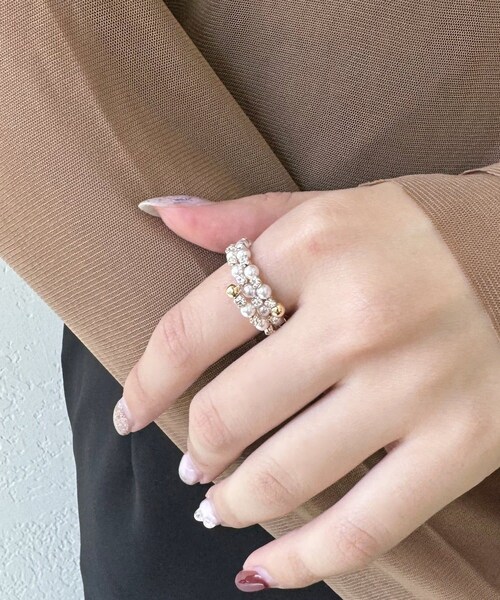 パールがポイントの新作リング・キレイめコーデにぴったりのデザイン・高見えデザインで手元をお洒落な印象に♪・他のリングと組み合わせて使うのもオススメ