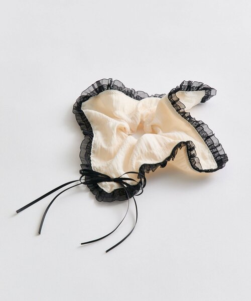 後ろ姿も映える!存在感たっぷりなシュシュ■デザイン・淡いベージュにブラックのシアーなフリルと細リボンをあしらった、ガーリーデザイン。 ・いつものポニーテールなどにプラスするだけで、一気に華やかな印象にアップデートしてくれます。・リボンが上に来るように付けるとかわいく仕上がります。 ・カジュアルからきれいめスタイルまで幅広く活躍します。・ギフトにもぴったりで、誕生日やちょっとしたプレゼントにも喜ばれるアイテムです。■カラー・アイボリーの1色展開※着用、お取り扱いの際は、商品についている品質表示とアテンションタグを必ずご確認下さい。※ご覧のモニター環境や撮影環境により実際の商品と多少色味が異なって見える場合がございます。ご理解の程よろしくお願いいたします。※引っかけ注意・粗い組織のものや、表面に凹凸があってルーズな組織のもの表面に糸が浮き出ているものは、ちょっとした不注意から引っかけてしまいがちです。取り扱いの際は取り扱い絵表示確認の上、十分注意してください。・着用時にベルトや、バックや周囲の壁など表面の粗いものとの摩擦や引っかかりに注意してください。・水洗いやクリーニングの際にも他の物ものとの引っかかりに注意して下さい。※使用時にお洋服などや周辺の壁など表面の粗いものとの摩擦やひっかかりに注意してください。※湿気の多い場所での保管や、水に濡れたまま放置しますと、変色、色移り、サビ、カビ、破損の原因となります。■お気に入り登録のおすすめ【気になるアイテムを登録】ハートをクリックしてお気に入りに登録すると完売カラーの再入荷やラスト1点の通知、セールの通知を受けとることができます。【ブランドを登録】新商品や再入荷、セール通知など、いち早くブランドの情報を受けとることができます。