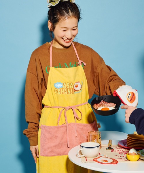 おいしい朝ごはんでちょっと幸せな気分になれる。にっぽんのASAGOHANをテーマにしたユニークなアイテムが登場!キッチンでの時間をより明るく、楽しいものにしてくれるデザイン。明るいイエローとピンクのカラーコンビネーションは、朝の爽やかなスタートにぴったり。大きめのフロントポケットが実用性も◎お気に入りのエプロンと共においしい朝ごはんを作って素敵な一日を始めるのはいかがですか?※サンプルにて撮影をしておりますので、実際の商品とは仕様や加工・サイズ等が若干異なる場合がございます。※屋外の光や照明の当たり具合で、実物と色味が異なって見える場合がございます。詳細画像の色味をご確認ください。 なお、商品の色や質感を出来るだけ忠実に再現するよう心掛けておりますが、パソコンなどの環境により、実物と若干異なる場合がございます。※写真を許可無くコピー・転用することは固くお断りします。