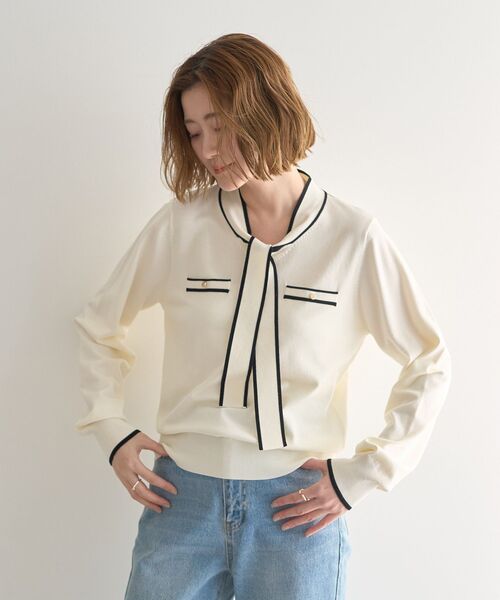 レーヨンベースの柔らかな素材で仕立てたニットプルオーバー。バイカラー配色がシックな印象を演出します。胸のフェイクポケットやメタルボタンが華やかに演出してくれる1枚です。Vネックにボウタイのデザインがフェミニンなムード。冬のオフィススタイルなど、きれいめに取り入れやすいアイテムです。透け感[なし]生地の厚さ[普通]光沢感[なし]伸縮性[あり]裏地[なし]ポケット[なし]※モデル着用画像は、光の当たり具合で色味が違って見える場合がございます。※お使いのモニター環境によって商品の色味が違って見える場合がございます。-------------------------------------------●YECCA VECCA●(イェッカ ヴェッカ)「大人のハッピーモードな着映え服」毎日を自分らしく、ハッピーに過ごすことにポジティブな女性のためのリアルクローズ。キーワードは「遊び心のある、女性らしいモード服」でも「コンフォート」。都会的で女性らしいムードを大切に着ていて心地よく、気持ちが上向きになるような遊び心のあるデザインウェアをラインナップ。自分自身がわくわく出来る洋服で日常を最大限に楽しむ大人の為のスタイルを提案していきます。▼商品のお気に入り登録がおすすめです ▼商品ページ内のハートマークをクリック。完売時の再入荷や、最後の1点の通知、コーディネート画像がアップされたとき、お得なお値下げの際の通知を受ける事ができます。【お知らせ】ページでも通知が確認できます。-------------------------------------------
