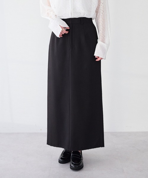 <大切な日を彩る。ハレの日服 ー Ceremony Collection> *すっきり縦長ラインで品よく決まる。カットアウトヘムIラインスカート。 【素材・着心地】 ポリエステルベースのしっかりした生地に裏地を配し、透け感は気にならない仕上がり。 適度なハリ感でラインがきれいに出つつ、後ろウエストのゴム入りで座ったときや食事後も窮屈になりにくく快適です。 生地の厚みは普通なので春の軽やかさや秋の立ち上がりにぴったり。 冬はタイツやロングブーツと合わせて温かく着回せます。 【デザイン・シルエット】 すっきりしたIラインが縦のラインを強調し、タイト過ぎない適度なゆとりで動きやすさを両立。 後ろスリットとカットアウトヘムが歩行時の抜け感を生み、サイドポケットやベルトループ、フロントのフック留めなど実用的なディテールも充実しています。 ベージュとブラックの落ち着いた色展開はきれいめカジュアルに相性抜群です。 【スタイリング】 通勤のオフィスカジュアルにはブラウスとジャケットで整えてローファーやヒールを合わせると好印象。 休日コーデはニットやカットソーをインしてスニーカーやフラットでリラックスに。 ベージュはワントーンで柔らかく、ブラックは引き締め役に。 旅行や学校行事など動きやすさが欲しいシーンにも頼れる、30代〜40代の大人のデイリーユースにフィットする一着です。 透け感[なし] 生地の厚さ[普通] 光沢感[なし] 伸縮性[なし] 裏地[あり] ポケット[あり] ※モデル着用画像は、光の当たり具合で色味が違って見える場合がございます。※お使いのモニター環境によって商品の色味が違って見える場合がございます。  ̄ ̄ ̄ ̄ ̄ ̄ ̄ ̄ ̄ ̄ ̄ ̄ ̄ ̄ ̄ ̄ ̄ ̄ ̄ ▼商品のお気に入り登録がおすすめです ▼ 商品ページ内のハートマークをクリック。完売時の再入荷や、最後の1点の通知、最後の1点など、お得なお値下げ情報を受けとる事ができます。 【お知らせ】ページでも通知が確認できます。  ̄ ̄ ̄ ̄ ̄ ̄ ̄ ̄ ̄ ̄ ̄ ̄ ̄ ̄ ̄ ̄ ̄ ̄ ̄