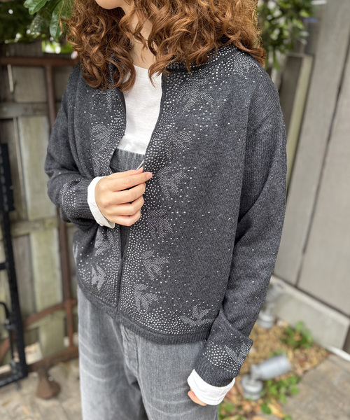 【2025AW】journal standard luxeウール・ナイロン・アクリル混の、軽くソフトな風合いの天竺編みです。ビジューが付いたクルーネックカーディガン。熱接着加工で付けた、二種類のビジューがスタイリングのアクセントに。デニムやカーゴパンツなど、カジュアルなボトムと相性抜群です。前ホック留め、身頃のみ裏地付きです。グレー・グレーA 2色展開。 FREEサイズ※取り扱いについては、商品についている品質表示でご確認ください。※照明の関係により、実際よりも色味が違って見える場合があります。またパソコン・スマートフォンなどの環境により、若干製品と画像のカラーが異なる場合もございます。※商品の色味は、商品アップ画像をご参照ください。モデルサイズ:身長:162cm 着用サイズ:フリー本体:手洗い可能
