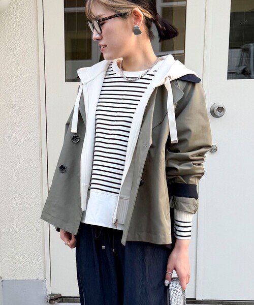 ◇26SS◇MICO COULIER春のはじまりに差をつけるバイカラーの洗練トレンチ◆Point・えりや袖タブ、背面にバイカラー配色を効かせた大人トレンチ・落ち着いたカラーリングで上品見え&どんなスタイルにも馴染みやすい・メタル縁のボタンがほどよくアクセントになり抜け感UP・ヒップにかかるショート丈でバランスが取りやすく、スカートにもパンツにも◎・軽やかに羽織れて、春の気温差にも対応・定番ながらちょっと差がつくデザイン・通勤も休日も頼れる、今シーズン取り入れたいアウター----------------------------------------------------------透け感:なし裏地:あり伸縮性:なし光沢感:なし洗濯:手洗い不可(ドライクリーニング)----------------------------------------------------------気になる商品は、お気に入り登録(♥マークをタップ!)がオススメですクーポン情報や入荷情報など、お得な通知が受け取れるようになります----------------------------------------------------------●お取扱い上のご注意●末永くご愛用頂くために、アテンションタグを必ずご確認の上、着用又はお取り扱い下さい。※店頭及び屋外での撮影画像は、光の当たり具合で色味が違って見える場合があります。商品の色味は、スタジオ撮影の画像をご参照下さい。※商品画像に関しては出来る限り忠実に表示出来るよう努めておりますが、お客様がご利用のモニターの設定及び特性により、実際の商品と比較し色味に若干の誤差が生じる場合があります。※製品洗い加工の商品は、多少の歪み、シワなどが見られたり、風合いやサイズ等が1枚1枚異なります。汗や雨等で濡れた時や、摩擦により色落ちし、他の衣料を汚すことがありますので(特に濃色のもの)ご注意ください。<MICO COULIER>今の気分をノーリーズらしく取り入れたデイリーアイテムを提案します。ウエアからグッズまで幅広いラインアップ。やわらかく透明感のある着こなしで新しい自分を発見。MICO COULIERの商品につきましてはアウトレット店舗にて展開をしております。