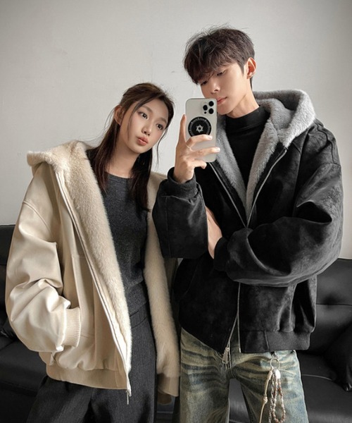 トレンド感のあるファー×フーディーデザインが特徴のムートン風アウター。表面はマットな質感の合成皮革で、内側とフード周りにはボリュームのあるファーを使用し、無骨さとラグジュアリー感を両立。ジップ仕様で着脱しやすく、リブ付きの袖口・裾がシルエットを引き締め、スタイルアップも叶えます。ストリートにも韓国系スタイルにもハマる、今っぽさ全開の一着!表地は合成皮革を使用し、リアルレザー風の高見え感を演出。裏地とフード内側にはポリエステル100%のファーを採用し、見た目以上に暖かく冬でも快適。袖口・裾のリブ部分はポリエステル95%+ポリウレタン5%で、程よい伸縮性がありストレスフリーな着心地です。細身〜ストレートデニムでY2K・韓国ストリート風にまとめるのがおすすめ◎インナーはタートルネックやハイネックトップスで大人っぽく、パーカー合わせでカジュアルダウンも◎足元はスニーカーでラフに、ブーツでエッジを効かせても映える、着回し力の高い主役アウターです。-お買い物をお楽しみいただくために-◆Instagram◆beyond_rad_usual新作情報やルックを配信中◆この商品が気になったらお気に入り登録完売カラーの再入荷通知やセール情報、ラス1情報などの通知を受け取ることができます。◆B.R.Uをお気に入りブランドに登録新商品や入荷情報を受け取ることができるので、いち早く新作をチェックできます!是非ご登録してくださいね。※撮影時のライティング、ご覧になっているモニター・PC環境により、実際の商品と色味が異なって見える場合がございます。予めご了承をお願い致します。海外 ニュアンス モード ジェンダーレス ペア 男女 こなれ きれいめ カジュアル シンプル スタイリッシュ フォーマル モードスタイル ラフ ストリート ユニーク ラグジュアリー クラシカル アンティーク ビンテージ ギフト プレゼント 韓国ファッション 韓国コーデ 韓国ストリート ユニセックス 韓国風 韓国アクセサリー 韓国 韓国通販 通学 ペアルック プチプラ 秋服 冬服 春服