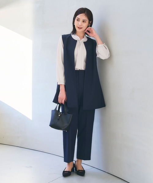 わがままを叶える 機能性◎な美シルエットスーツシリーズ ■正解スーツとは? セレモニースーツこそ「失敗したくない」。 そんな声にこたえるべく、素材には上質なダブルクロスを使用し、着心地もお手入れのしやすさにも抜かりない高機能性を実現。 縦ラインを意識した計算しつくされた美シルエット、「私らしさ」を求めた4つのバリエーション、7号~15号までの豊富なサイズ展開をご用意しています。 《嬉しい4つの機能》 1. 防シワ シワを防ぐ仕様で、いつでもきれいな状態をキープ。長時間座っていてもシワがつきにくく、セレモニーシーンにも◎お手入れが楽ちんで出張等にも最適です。 2. 洗濯機洗い可能 おうちでお洗濯できるので、汚れてしまったりニオイが気になっても安心。 3. ストレッチ 着心地抜群で動きやすく、スーツ特融の窮屈さを軽減。 4. UVカット UV対策機能付きで紫外線から肌を守ります。 【デザイン】 ▽ジャケット ・縦のラインをつくり、すっきりとコーディネートをまとめてくれるノーカラーのロングジレ。 ・気になる腰回りやヒップ、太ももまわりをしっかりカバーしてくれる丈感も嬉しいポイント。 ・ノーカラーなので顔回りをすっきり、明るい印象に。ボウタイやリボンデザインなどレイヤードのブラウス次第で華やかな雰囲気にもできる優秀さも魅力的。 ・両サイドのスリットデザインで抜け感をプラスし、着心地も◎ ・広がりすぎないAラインシルエットがスマートさもありつつ、女性らしくまとめてくれる1着です。 ・後ろのタックデザインで、バックスタイルも抜かりなく。 ・両サイドには便利なポケット付き。 ▽パンツ ・合わせるジャケット・トップスを選ばないスマートな印象のワイドパンツ。 ・太すぎず、足のラインを拾わない程よいワイドシルエットで頼りになる優秀な1本。 ・センタープレスを施し、縦のラインをつくることですっきりときれいに見せてくれます。 ・ウエストはバックゴムでフィット感も着心地の良さもアップ。 ・両サイド、バックには便利なポケット付き。 【コーディネート】 ▽ジャケット ・合わせるインナーやアウターによってオールシーズン着用可能。様々な行事やシーンで活躍します。 ・ノーカラーなのでどんなブラウスとも合わせやすく、着回し力も万能な1着。大ぶりなリボンボウタイと合わせれば女性らしく華やかに、ベーシックなシャツと合わせてスマートに着こなすのもおすすめです◎ ▽パンツ ・正解シリーズのジャケットとはもちろん、お手持ちのブラウスなど、どんなトップスとも合わせやすいワイドパンツは重宝すること間違いなし。 ・合わせるアイテム次第でオフコーデでも活躍します。 【サイズ展開】 7号 9号 11号 13号 15号 モデル身長:166cm(ショートヘア)/167cm(ミディアムヘア) 着用サイズ:9号サイズ 【洗濯・取り扱い】 洗濯:洗濯可能(洗濯ネットの使用をおすすめいたします) アイロン:可 乾燥:タンブル乾燥不可 ------------------------------------- 透け感:なし 伸縮性:あり 厚み:普通 裏地:あり(ジャケットのみ) 洗濯:可 -------------------------------------- 【おすすめ着用シーン】 卒業式 / 卒園式 / 入学式 / 入園式 / セレモニー / ハレの日 / ビジネス / 七五三 / お宮参り/ お呼ばれ / 通勤 【シリーズ展開】 ・単品 正解 ワイドパンツ(品番:954021) 正解 テーパードパンツ(品番:954022) 正解 ロングジレ(品番:954018) 正解 ペプラムブラウス(品番:954019) 正解 ノーカラージャケット(品番:954020) 正解 ワイドパンツ(品番:954021) 正解 テーパードパンツ(品番:954022) ・ロングジレ&パンツ2点セット 正解 ロングジレ・ワイドパンツセット(品番:954026) 正解 ロングジレ・テーパードパンツセット(品番:954027) ※撮影時のライティング、ご覧になっているモニター・PC環境により実際の商品と色味が異なって見える場合がございます。ご了承の上お買い求め下さい。 ※着用画像のコサージュ、バッグはセットではございません。予めご了承ください。
