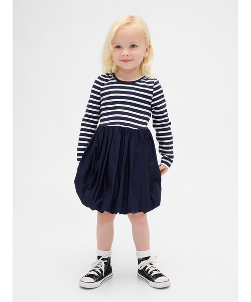 優しく心地良い肌触りのコットンジャージートップスとポプリン生地のバルーンスカートを合わせ、異素材を組み合わせたデザインが特徴的なワンピースラウンドネック長袖ストライプ柄スカートにシャーリングギャザーのディテール裾に膨らみを持たせた裾バルーン*商品タグに記載の価格とサイト上の販売価格が異なる事があります。【Gap ギャップ】1969年にアメリカ・サンフランシスコで創業以来、世界的なカジュアルファッションブランドとして、常にモダンなアメリカンカジュアルを提案し続けています。※商品画像は、光の当たり具合やパソコンなどの閲覧環境により、実際の色味と異なって見える場合がございます。予めご了承ください。