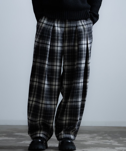 トレンドライクなチェックワイドパンツ ●リラックス感のあるワイドシルエット ●ストレスフリーな穿き心地でリラックス感を演出 ●フロントのタックが立体感を生み、きれいめカジュアルを実現 ●洗濯後もしわになりにくいイージーケア素材 ●同素材のブルゾンとのセットアップもおすすめ 主役級の存在感を持つチェック柄が、コーディネートを一気にブラッシュアップ。シックな配色なので、派手になりすぎず大人っぽく穿きこなせます。ニットやタートルネックをインしたきれいめカジュアルから、スウェットやパーカーと合わせたストリートスタイルまで、幅広いコーディネートに活躍します。