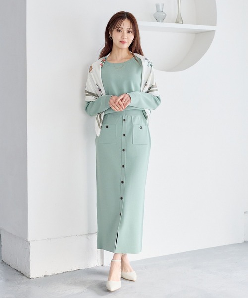 前後2WAYのカーディガンとスカートのセットアイテム。 ボタンがアクセントになりセットアップでワンピースのような着こなしから、それぞれ単品使いもしやすいセットです。 ジャストウエストのカーディガンは、プルオーバーでも羽織りでもすっきりと着回しができます。 スカートはすっきりとしたナローシルエット。後ろにはスリットを入れて足さばきの良さと抜け感もプラスしています。 【お手入れ方法】 手洗いでのお手入れが可能です。 ※屋内外の光や照明の当たり具合で、実際の商品の色味とカラー別画像の色味に違いが発生する場合がございます。色味はスタジオ撮影の詳細画像にてご確認ください。 ※生地の寄り画像が最も実物に近い色味となります。 ーーーーーーーーーーーーーーーーーーーーーーー ▼ 商品のお気に入り登録 ▼ 完売カラーの再入荷通知や、ラスト1点の通知、 クーポン開始、セールの通知も受け取ることができます。 ▼ ブランドのお気に入り登録 ▼ 新商品や再入荷など、 ブランドのお得な情報をいち早くお知らせ! ぜひご登録ください!
