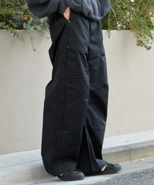 リラックス感とこなれ感を演出できるツイルワイドパンツ ●フロント部分とバックポケットにはトレフォイルロゴの 刺繍をデザイン。 ●ジッパーフライ仕様となっており、フロントボタンにも トレフォイルロゴをデザイン。 ●耐久性に優れたツイル生地を採用しており、フォーマル からカジュアルまで幅広いスタイリングとマッチします。 ●ウエスト部分にはフィット感のあるゴムを完備しており、 ベルトループは太めの設計となっています。 ●サイドポケットのフラップボタンを外すことで、 開け口を広げることが可能。 ●太もも周りにゆとりのあるカーブシルエットのワイドパンツで 動きやすくカジュアルな雰囲気をプラス。 ♦おすすめコーディネート モンスターパーカーやハンティングジャケットなどと 合わせたトレンドライクな着こなしもおすすめです。 スウェットやニットなどのカジュアルなトップスと 合わせてボトムのシルエットを強調させるのもおすすめです。 ■素材 綿64%,ポリエステル36% ■メーカー品番 CX114 【or slow/オアスロウ】 19世紀から20世紀にかけて定番服として誕生した衣類。 特にワーク&ミリタリーから派生する衣類は仕事着に限らずファッションとしても永遠に愛され続けています。 そういった永遠の定番服を参考しに私たちのフィルターを通してSlowにデザインしています。 originalityのある服を吟味ながら物作りをする。 時代に流されずいつの時代でもその時代のスタイリングに取り入れることの出来る服。 早く前へ進もうとする現代社会やファッションに対して急がずゆっくりしませんか? という感覚。 【ROOPTOKYO ZOZOTOWN お買い物ガイド】 ▼商品をお気に入り登録! 完売商品の再入荷やラスト1点の通知、セール開始時にお知らせ! ▼"ROOPTOKYO(ループトーキョー)"をお気に入りブランドに登録! 新商品や再入荷など、ブランド最新情報をいち早くお知らせ! 是非、ご活用いただきお買い物をお楽しみください!