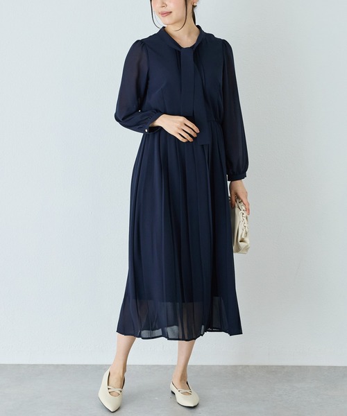 オケージョンシーンにも使える上品プリーツワンピース。シボ感のあるドライタッチな風合いのシフォンジョーゼット生地を使用。裾にかけて施されたプリーツが、美しい動きを生み出します。広がりすぎず、すっきりとした上品シルエットをキープしてくれます。シワになりにくい生地なので、扱いやすく普段使いからちょっとしたお出かけまで幅広く対応します。*豊富なマルチサイズ展開/大きいサイズ対応(M/L/LL)*オフィスカジュアル/通勤服/リモートワークにも◎*自宅で洗濯可能(洗濯機・ドライ)*入学式/卒業式、入園式/卒園式、セレモニーやイベントに最適◆INCEDE◆■商品注意事項■※商品画像は、光の当たり具合やパソコンなどの閲覧環境により、実際の色味と異なって見える場合がございます。予めご了承ください。※末永く愛用頂く為に、アテンションタグ・洗濯ネームを必ずご確認の上、着用又はお取り扱い下さい。※生産時期により色味が多少異なる場合がございます。予めご了承ください。