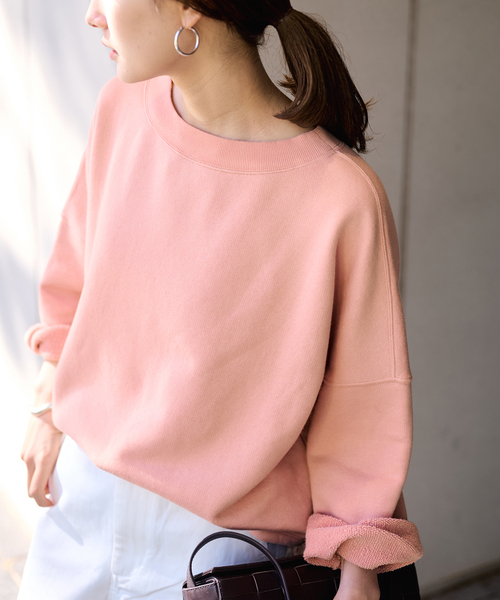 人気のコットンリヨセルボートネックSWEATが、リニューアルして再登場!ふくらみのある柔らかな裏毛素材を使用した、女性らしいニュアンスカラーが魅力のスウェット。セルロース混ならではのソフトな風合いで、着心地も快適です。昨年のデザインをリニューアルし、ポンチョのようなオーバーサイズに細めの袖を組み合わせ、メリハリのあるシルエットに進化。ボートネックと太めの襟が顔まわりをすっきり見せ、裾のラウンドデザインでヒップ周りも自然にカバーします。**********************透け感:なし裏地:なし伸縮性:ややあり光沢感:なし生地の厚さ:普通**********************※カラーによってリブの素材が異なります。ブラック・ホワイトA・ピンクB:リブ1(綿54%/再生繊維(リヨセル)44%/ポリウレタン2%)グレーA:リブ2(綿75%/再生繊維(リヨセル)23%/ポリウレタン2%)※取り扱いについては、商品についている品質表示でご確認ください。※こちらの商品は、FRAMeWORK での取り扱いになります。直接店舗へお問い合わせの際は FRAMeWORK 店舗へお願い致します。※照明の関係により、実際よりも色味が違って見える場合があります。またパソコン・スマートフォンなどの環境により、若干製品と画像のカラーが異なる場合もございます。予めご了承の上ご注文ください。※商品の色味は、商品アップ画像をご参照ください。本体:洗濯機洗い(弱)