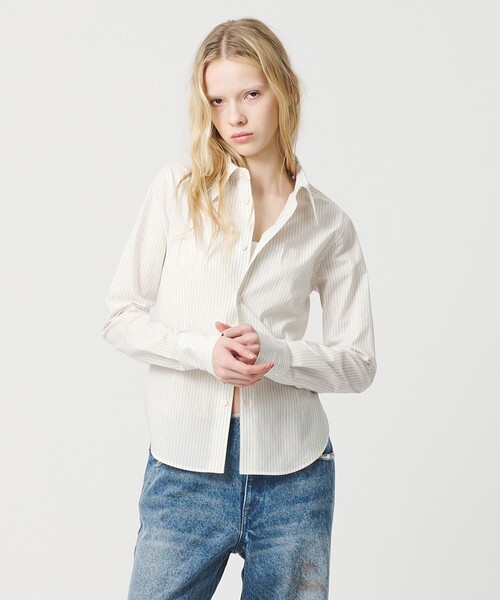 カービーなシルエットとミニマムなサイジングが<ATTISESSION>らしいストライプ柄シャツ ■デザイン シェイプさせたウエストデザインが魅力的なスリムフィットのストライプシャツ。 ロングポイントの襟元&袖口の開き部分を長めに仕上げて、さりげないアクセントを添えたアイテムです。 一枚着ではもちろん、羽織りとしても活躍し、汎用性がありロングシーズン着用が叶う一着。 ■素材 コットン100%で、表面感のきれいなストライプ素材を使用。 ■コーディネート ヴィンテージライクなディテールのデニムパンツなど、カジュアルなボトムのはずしとして取り入れるのがおすすめです。 ウエストシェイプですっきりとしたサイズ感を活かし、ボリュームのあるワイドボトムと合わせるのも◎。 ============================ 裏地:なし 透け感:なし 伸縮:なし 光沢感:なし ケア方法:手洗い可 ============================ 【注意事項】 ※商品に「取り扱い上の注意書き」、「洗濯表示」がございます場合は、使用前に必ずご確認ください。 ※商品画像は、光の当たり具合やパソコンなどの閲覧環境により、実際の色味と異なって見える場合がございます。あらかじめご了承ください。 ※商品の色味の目安は、商品単体の画像をご参照ください。 ※画像の商品はサンプルです。 店舗へお問い合わせの際は、全国のATTISESSION各店舗まで下記の品名/品番をお申し付けください。 品名:ATT C STRIPE SLIM SHT 品番:56111000002