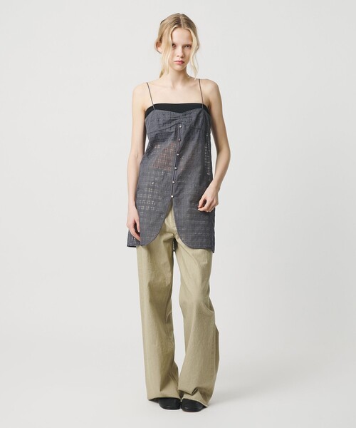 季節に応じて着方を楽しめる頼もしいミニワンピース ■デザイン シアーな素材感×華奢なストラップデザインが、軽やかなラインとフェミニニティなムードを醸し出すミニワンピース。 フロントにはボタンディテールを加え、シンプルな中にさりげないアクセントを添えた一着です。 デイリーユースなアイテムにプラスすることで、普段とは異なった雰囲気が味わえるアイテム。 ■素材 オーガンジーにチェック柄の刺繍を施した透け感のある素材。 ■コーディネート ミニ丈ボトムと合わせてワンピース風にはもちろん、ルーズシルエットのデニムパンツと合わせてトレンド感のある装いもおすすめです。 春夏はシャツやTシャツ、タンクトップと、秋冬にはジャケットや薄手のニットなどとコーディネートしシーズンレスに取り入れるのも◎。 ============================ 裏地:なし 透け感:あり 伸縮:なし 光沢感:なし ケア方法:手洗い可 ============================ 【注意事項】 ※商品に「取り扱い上の注意書き」、「洗濯表示」がございます場合は、使用前に必ずご確認ください。 ※商品画像は、光の当たり具合やパソコンなどの閲覧環境により、実際の色味と異なって見える場合がございます。あらかじめご了承ください。 ※商品の色味の目安は、商品単体の画像をご参照ください。 ※画像の商品はサンプルです。 店舗へお問い合わせの際は、全国のATTISESSION各店舗まで下記の品名/品番をお申し付けください。 品名:ATT PE EMB CHK DRESS 品番:56261000001
