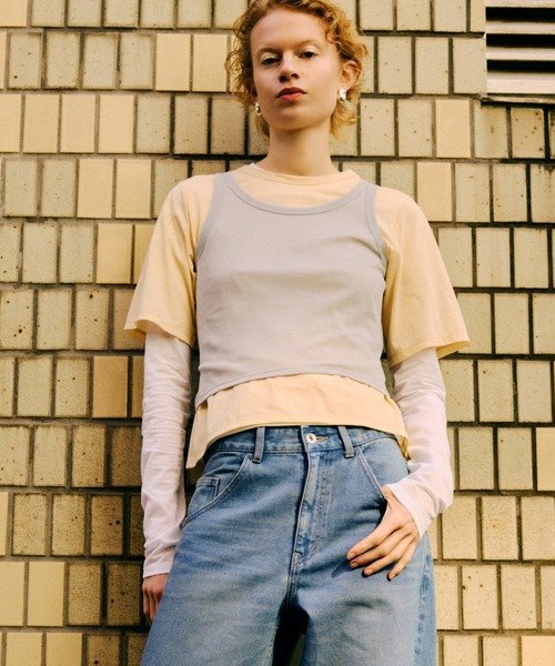 《セットアイテム・イージーケア》旬なレイヤードスタイルを楽しめる1着。こなれ感のあるカラー使いが目を惹く、それぞれ単品使いでも着回せる3レイヤードジャージートップス◇26SS◇ADAM ET ROPE' FEMME【Material】ロンT &Tシャツ:100/-の細番手の綿にナイロンをカバーリングした糸で編み立てた天竺素材を使用。天然素材ベースのソフトな肌触りと、独特のきしみ感が特徴。また軽やかさを感じさせる透け感がポイント。タンクトップ:ロンT &Tシャツと同じ糸で編んだテレコ素材を使用。テレコ組織ならではの畝の立体感と繊細な透け感が特徴。【Design】トレンドのレイヤードスタイルが1枚で叶うアイテム。ロンT、Tシャツ、タンクトップの3つがセットになった汎用性の高いトップス。レイヤードして着用した際に決まるように、襟ぐりの開きやサイズ感などのこだわりはもちろん、透け感のある薄手の素材を使用し着心地にもこだわったアイテム。コンパクトなサイズ感でアウターの中にも着用でき、ロングシーズン楽しめるアイテム。【Color】ブラック:ロンTにはトレンドカラーのレッド、半袖には上品さのあるアイスグレー、タンクトップには汎用性の高いブラックの3枚セットグレー:ロンTには着回しの利くホワイト、半袖にはトレンドカラーのたまごのような柔らかなイエロー、タンクトップには上品さのあるアイスグレーの3枚セット【Styling Point】コンパクトなサイジングなのでワイドボトムとの合わせが素敵。パラシュートパンツやデニムなど、カジュアルなボトムに合わせて透けのニュアンスを楽しむのがオススメ。それぞれ単品での着用も◎---------------透け感:あり裏地:なし伸縮性:あり光沢感:なし生地の厚さ:薄手開き方:かぶり---------------◇モデル情報身長:166cm size:F※撮影時の光、お使いのモニター環境によって色の見え方が違う場合がございます。