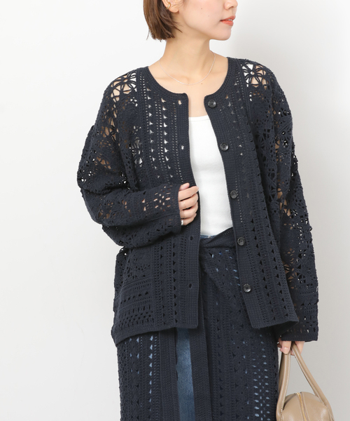 【2026SS】JOURNAL STANDARD relume◆ナチュラルな風合いのクロシェ風レースのカーディガンレース柄はオリジナルで作成したrelumeだけの特別な柄。リラックス感のあるゆったりとしたシルエットが大人の抜け感を漂わせます。羽織りとしてはもちろんボタンを留めてプルオーバー使いするのもオススメ◎柔らかな綿素材を使用しており肌触りも抜群です。デイリー使いしやすい程よいクラフト感で1枚で気映えのするアイテム。手洗い可能なのも嬉しいポイントです。同シリーズで下記もございます。クロシェレースラップスカート(品番:25080462701010)※身丈採寸方法について首の横の付け根(サイドネックポイント)から裾までの長さ(リブ含む)※取り扱いについては、商品についている品質表示でご確認ください。 **********************透け感:あり(編地によるもの)裏地:なし伸縮性:なし光沢感:なし生地の厚さ:普通**********************【スタッフ着用コメント】 《スタッフM》 身長:160cm/体型:普通/普段サイズ:M/着用サイズ:FREEサイズ感:着丈はヒップがちょうど隠れるぐらいの長さです。身幅は十分にゆとりがあります。素材感:コットンレース素材。着心地:Tシャツをインしてカジュアルに着こなしたり、タンクトップでヘルシーな肌見せスタイルを楽しむのも◎**********************※照明の関係により、実際よりも色味が違って見える場合があります。またパソコン・スマートフォンなどの環境により、若干製品と画像のカラーが異なる場合もございます。※商品の色味は、商品アップ画像をご参照ください。本体:手洗い可能