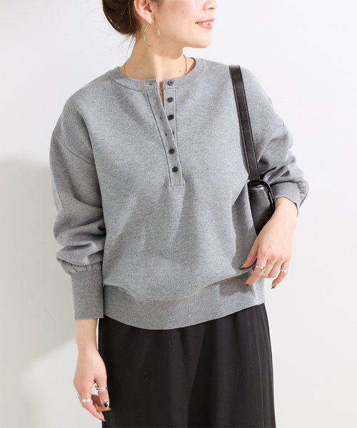スウェット見えする接結ニットプルオーバー。釦開きヘンリーネックの抜け感のあるシルエットの毛羽感を抑えた綺麗目なニットです。ロングシーズン活躍するほどよい肉感とチクチクを感じない素材感が魅力。釦を開けて、中からカットソーを見せたレイヤードスタイルもおすすめです。ネットに入れ、洗濯機洗い(弱)可能で気軽にお手入れできるのも嬉しいポイント。●シリーズ商品品番:26080700221010 接結ニットカーディガン品番:26080700222010 接結ニットプルオーバー**********************透け感:ホワイトのみややあり裏地:なし伸縮性:ややあり光沢感:なし生地の厚さ:普通**********************【スタッフ着用コメント】《スタッフ staff.Y》身長:160cm/普段サイズ:M-L/着用サイズ:フリーサイズ感:長袖のトップスを着れるぐらいの程よくゆとりのあるサイズ感。素材感:ハリは無く柔らかいコットン混素材。着心地:チクチク感もなく一枚でもアウターのインナーにも着やすいです。※あくまで個人の感想です。**********************※取り扱いについては、商品についている品質表示でご確認ください。・着用中の摩擦や、汗、水濡れにご注意ください。濡れたままの状態で擦れると、色移りすることがあります。※こちらの商品は、B.C STOCKでの取り扱いになります。 直接店舗へお問い合わせの際はB.C STOCK店舗へお願い致します。※照明の関係により、実際よりも色味が違って見える場合があります。またパソコン・スマートフォンなどの環境により、若干製品と画像のカラーが異なる場合もございます。※商品の色味は、商品アップ画像をご参照ください。 グレー、ネイビー着用スタッフ:157cm 着用サイズ:フリーホワイト、ブルー着用スタッフ:163cm 着用サイズ:フリー詳細着用モデル:163cm 着用サイズ:フリー本体:洗濯機洗い(弱)