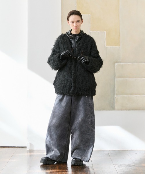 細かな繊維を生地表面に固着させる、フロッキー加工を施したカーブデニム。重くなりすぎないオンス感のデニムにフロッキー加工を重ねることで、日常に取り入れやすい軽さと、奥行きのある表情を両立しています。レーヨン素材のフロッキーならではの柔らかく滑らかなタッチと、ほのかな光沢感がかるため、スエードやベルベット素材を思わせる、デニムとは一線を画す上品な見え方が特徴です。シルエットには、腰から裾にかけて自然な丸みを描くカーブシルエットを採用しており、存在感のある1本になっています。フロッキー加工は、着用や洗濯を重ねることで繊維が変化していき、接着面にひび割れなどが生じていくことで、ヴィンテージのような風合いへと変化していきます。時間とともに表情を変えていくため、その過程も含めて楽しんでいただけるデニムとなっています。※フロッキー加工の特性上、最初の2〜3回の洗濯は他の衣類と分け、裏返しての洗濯を推奨しております。- soerte (ソエルテ) -soerte (ソエルテ) とは 着ていただく方の成長やスタイリングに対してのサポートや手助けをコンセプトに 手を添える=添える手 (ソエルテ) という意味を込めてアイテムを展開しております。▼商品のお気に入り登録完売カラーの再入荷通知や、ラスト1点、セールの通知をお知らせ致します。▼ブランドのお気に入り登録新商品や再入荷など、いち早くブランドの情報を受け取ることができます。