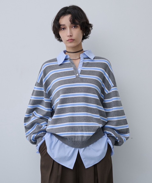 ー ディテール ーシャツをレイヤードしてるような見え方のドッキングニット。膨張しないピッチのボーダーと異素材使いで野暮ったくならずメリハリのある着こなしができます。シンプルなボトムに映える旬顔なアイテムです。【色味に関しての注意事項】商品画像は、ストロボなど撮影機器の使用や光の当たり具合、お使いのスマートフォンやパソコンなどの閲覧環境により、実際の色味と異なって見える場合がございます。予めご了承ください。【SNS動画掲載アイテム】@aic_official上記の公式インスタグラムアカウントにて着回し動画を掲載しております。是非ご覧くださいませ。★お取り扱い注意事項★下記をご確認いただきご了承の上、ご購入ください。・この商品は伸びやすいニットアイテムです。保管の際は必ず吊りではなく、平置きで保管するようにお願いします。・ニット製品は伸びやすいため、サイズ等が色により誤差が生じる場合がございます・着用中の摩擦などにより、ピリング(毛玉)が生じる場合があります。・洗濯の際は色落ちしますので単独で洗い、湿気を含んだ状態や水につけたままで放置しないでください。・濃色の製品は、摩擦や汗、雨などで濡れると、ほかの衣料に色移りする場合がございますので、充分ご注意ください。・商品の写真はサンプル品を撮影している為、実際の商品とは仕様や加工、加工によるダメージ、サイズ等が若干異なる場合もございます。・初回販売分と生産時期の異なる商品は、色味や加工等若干異なる場合がございます。・システムの都合上下げ札の税込み価格表記が商品ページの税込み価格と1円ずれている場合がございます。・掲載画像の商品の色味は、屋外や屋内の光の照射や角度により実物と色味が異なる場合がございます。また表示のサイズ感と実物は若干異なる場合もございますので、 ・着用、お取り扱いの際は、商品についている品質表示とアテンションタグを必ずご確認下さい。