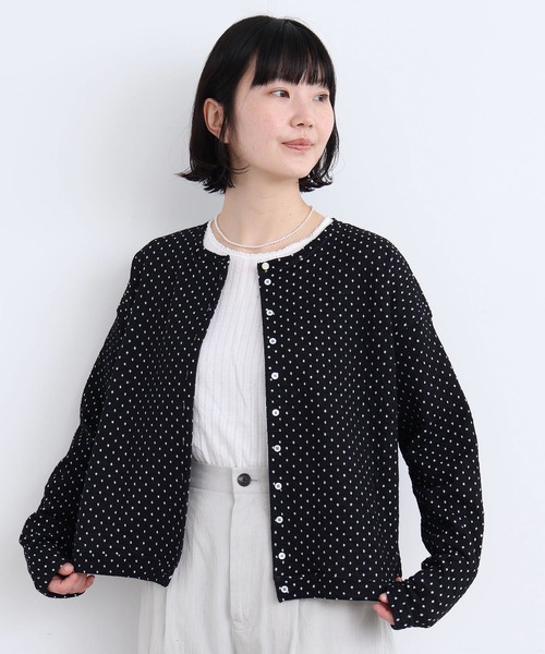 接結という2枚の生地をくっつける方法で編まれたカットソー生地。 ドットの部分で生地同士がくっついており、表側がウール梳毛で裏側は綿になっていて着心地も◎ それぞれの糸で縮み方が違い、また部分的にしかくっついていないので、やわらかくふっくらとした立体感がある素材です。 ボタンの配色糸がポイントのカーディガン。 ベーシックな形ですぐデイリーに取り入れられるアイテム。 ドット柄ですがポップ過ぎない雰囲気で着られます。 ※着用商品はサンプルです。実際の商品と仕様、加工、サイズが若干異なる場合がございます。 ※光の関係で実物の商品の色味とは若干異なる場合がございます。 実際に近い色味は詳細画像をご参照下さい。 ※取り扱いの注意については取り扱い表示をよくご確認の上、着用をお願いいたします。 【素材の特性、お取り扱いの注意】 ・この製品は生地洗いをしています。一枚ずつしわや表情の出かたに差がありますが他にない独特の表情感をお楽しみください。 ・ひっかかり、糸切れが起こり易いので、着用、着脱時には十分注意して下さい。 ・この製品を洗濯する際には多少縮む場合がありますので、形を整えてから日陰で干して下さい。 ・この製品は、素材風合いの性質上、着用の際、毛羽の細かなもつれが絡み合いピリング(毛玉)が発生する場合がありますので、連続着用を避け、ピリングが出来てしまったら引っぱって取ろうとせず、小さなハサミで丁寧に取り除いて下さい。 ・縮みをおこしやすいので、タンブラー(衣類乾燥機)使用は避け、風合いを保つ為手洗いで形を整えて陰干しして下さい。出来るだけドライクリーニングにすることをおすすめします。 ・こちらの商品は、濃色の場合汗や雨などで濡れた際に摩擦により色落ちし、他の衣料や小物に移染することがありますので、ご注意ください。 l'atelier du savon(アトリエドゥサボン) CONCEPT 1つ1つにかけられた手のぬくもり 日々の生活に、少しのデザインを加えた大人の日常着 あそび心とあたたかみ