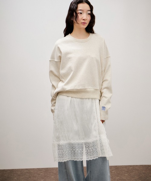 《2WAY・肩紐調節可》ワンピースにもスカートにも変化する一着。繊細なレースのディティールが、普段のスタイリングにプラスワンするだけで華やかさをプラスしてくれるアイテム◇26SS◇ADAM ET ROPE' FEMME【Material】ワッシャーのかかった、セルロースナイロン混のフィブリルツイル素材。柔らかさと落ち感、シルキータッチな風合いが魅力。【Design】繊細なワイド幅のレースをたたきつけた華やかな2way仕様のワンピーススカート。レースが重なり合ったスリットディテールがアクセントに。肩紐を取り外しウエストの紐を絞ってスカートとして着用したり、肩紐有りでチュニック丈のレイヤード用ワンピースとしても着用が可能。ゴム仕様なので、ストレスフリーなのも嬉しいポイント。【Color】フィブリル感により柔らかいカラーに仕上がったブラック、爽やかなホワイトの2色展開。【Styling Point】スラックスや、デニムにレイヤードして着用するのがおすすめ。カジュアルなブルゾン合わせも素敵。---------------透け感:ホワイトのみあり裏地:なし伸縮性:なし光沢感:なし生地の厚さ:薄手ポケット:なし---------------◇モデル情報身長:166cm size:F(バングなしショートヘア)身長:165cm size:F(バングありボブヘア)※撮影時の光、お使いのモニター環境によって色の見え方が違う場合がございます。