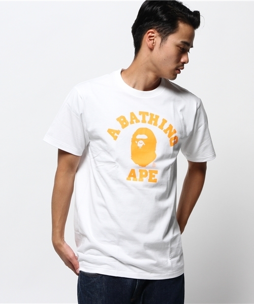 【A BATHING APE 2015 AUTUMN / WINTER COLLECTION】 NEON COLLEGE TEE冴え渡るネオンカラーでプリントされたBAPEカレッジロゴが着こなしのメリハリとなるTシャツ。各色「BLUE, GREEN, ORANGE」の3色展開となっています。