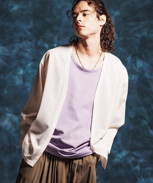 175cm B83cm-W66cm-H87cmのモデルがMサイズを着用。 シアー感のあるメッシュ生地を使用したボタンレスカーディガン。 ゆったりとしたシルエット。 レイヤードスタイルを楽しめるアイテムです。 ※着用画像と商品単体画像で色が異なる場合がございます。 ※商品単体画像を実物により近づけております。