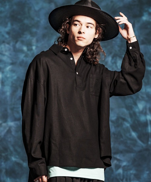 175cm B83cm-W66cm-H87cmのモデルがMサイズを着用。とろみとシャリ感を持ち合わせたレーヨンリネン生地を使用したプルオーバーシャツ。ゆったりとしたシルエット。同素材のパンツとのセットアップコーデも可能のアイテムです。【セットアップ対応アイテム】検索品番:JIH-R1159※着用画像と商品単体画像で色が異なる場合がございます。※商品単体画像を実物により近づけております。
