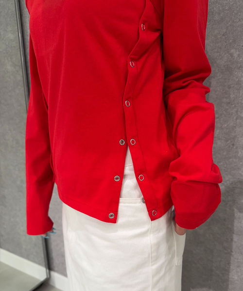 【2026 SS】 Oriens JOURNAL STANDARD 切替部分にリングドットボタンを施した、アレンジ自在のロングスリーブTシャツ。 ボタンを開ければスリットのような抜け感が生まれ、ボタンの止め方で何通りのも着用が可能。 身体のラインを細く見せるこだわりの切替デザインで、シンプルながら視線を集める一枚。 スタイリングに合わせて着方を変えられる、着回し力の高いアイテムです。 ********************** 透け感:ホワイトややあり、グレーA・レッドなし 裏地:なし 伸縮性:ややあり 光沢感:なし 生地の厚さ:普通 ********************** <気になったアイテムは『お気に入り』がおすすめです!> お気に入り登録した商品の再入荷・在庫情報・値下げなどの通知を受け取ることができます。 <Oriens JOURNAL STANDARD 公式Instagramで最新情報をご覧くださいませ!> ※取り扱いについては、商品についている品質表示でご確認ください。 ※照明の関係により、実際よりも色味が違って見える場合があります。 またパソコン・スマートフォンなどの環境により、若干製品と画像のカラーが異なる場合もございます。 ※商品の色味は、商品アップ画像をご参照ください。 本体:手洗い可能