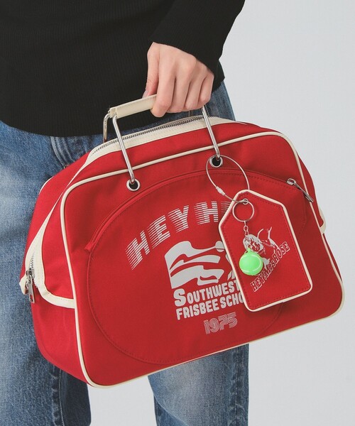 トレンドライクなスポーツバッグ■デザイン仮想のフリスビークラブ「SOUTHWEST FRISBEE SCHOOL」公式バッグをイメージした、ユニークなバッグ。 ヴィンテージのスポーツバッグから着想を得たデザインです。おもちゃのキーホルダーとネームカードチャームが付属。■コーディネートクロップド丈のトップスやカーゴパンツなどに合わせて旬なスタイリングにおすすめ。ミニスカートやローファーと合わせて、スタイリングに海外のスクールガールなムードを加えます。■サイズA4サイズも収納可能な、普段使いにちょうど良いサイズ感。広めのマチと内ポケットにより、荷物の整理がしやすい設計です。フロントとバックの大きめなジップポケットは、小物やスマートフォンの収納にピッタリ。■素材耐久性のあるキャンバス地で、タフに使える生地感。パイピングやジップ周りに施されたディテールが、全体を引き締めています。■メーカー番号255-140506※光の当たり具合やパソコンなどの閲覧環境によって、実際の色味と異なって見える場合がございます。予めご了承ください。※商品の色味は商品単体で撮影した画像をご参照ください。HEY!Mrs ROSE/ヘイミセスローズ旅とヴィンテージをこよなく愛する架空の女性「Mrs ROSE」。ファッションを楽しみ生きている現代の女性に向けて、クローゼットに眠る一途に偏愛し続ける宝物の中から、今の気分にインスピレーションを受けモダンにブラッシュアップさせたBAGを中心としたコレクションを展開しています。