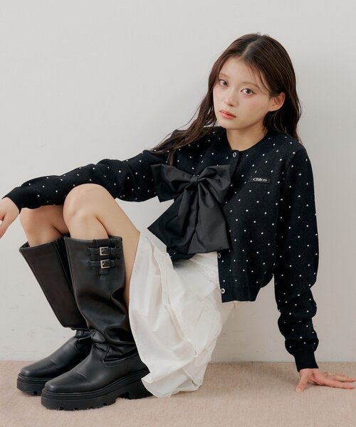 胸元のリボンが魅力のコンパクトニットカーディガン登場♡WEB限定カラー:ブラック系その他2\完売カラーは”お気に入り登録”をして再販売をお待ちください!/▶商品ポイント・胸元のロゴとリボンが目を惹く、コンパクトニットカーディガン。・コンパクトなシルエットのため、スタイルアップ効果も◎・胸元のリボンは取り外し可能なため、お好みに合わせて雰囲気を変えて着用いただけます。▶スタイリングポイント・同素材のニットショートパンツと合わせてセットアップで着るのが可愛くておすすめです。・ミニボトムと合わせるとフェミニンなスタイルに仕上がります。・デニムパンツと合わせてカジュアルダウンして着るのも◎▽セットアップ対応アイテムコンパクトニットショートパンツ【CHZ1052602A0003】▽ルーズバージョンはこちらリボンルーズカーディガン【CHZ1052605A0013】▶洗濯表示洗濯:手洗い可タンブル乾燥:不可アイロン:不可クリーニング:ドライ・ウエット可※取り扱い注意事項(詳しいお手入れ方法は商品タグをご参照ください……………………透け感:なし厚さ:普通伸縮性:あり裏地:なし……………………--------------------------------------------▼お気に入り登録のおすすめ▼ハートをクリックしてお気に入りに登録すると完売カラーの再入荷や残り1点の通知、セールの通知を受けとることができます。▼ブランドのお気に入り登録▼新商品や再入荷、セール通知やショップのおすすめトピックスなど、いち早くブランドの情報を受け取ることができます。▼メルマガ登録▼Chicoのお得な情報やニュースを一足先にお届けします。--------------------------------------------※商品について・サイト上のカラー名と、お届け商品に記載されているカラー名が異なる場合がございます。・商品の色味は、撮影場所や光のあたり具合などにより色味が違って見える場合がございます 。また、お客様のお使いのPCのモニター環境などにより色味が違って見える場合がございます。予めご了承の上ご注文下さい。・セールは予告なく終了させていただく場合もございます。※商品ページでは、遅延などの影響も考え、お届け予定時期を少し先に設定させていただいております。予約商品は商品ページに記載しているお届け予定時期よりも早いお届け予定になる場合がございますので、予めご了承ください。※返品・キャンセルについて・着用、洗濯後の返品、交換は致しかねます。・商品到着後、着用前に商品を確認して頂きますようお願い致します。※画像の商品はサンプルです。実際の商品と仕様、加工、サイズ、素材が若干異なる場合がございます。※ご注文いただいた予約商品のお届け時期の確認は、注文履歴ページより行えます。