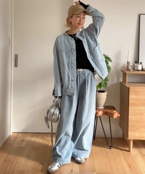 <SNSで話題★人気インフルエンサー着用>☆Izumiiさん(@___sui.___):ライトブルーMサイズ着用☆haruさん(@haru_wear):ライトブルーMサイズ着用☆annaさん(@12anna23):ライトブルーMサイズ着用☆mayoさん(@ema.217):ライトブルーMサイズ着用☆yumiさん(@maayuuta):ライトブルーMサイズ着用▼選べるデニムセットアップ<ジャケット>品番:26638884 LBCデニムノーカラージャケット(ネイビー・ブラック・カーキ)品番:26638958 LBCデニムノーカラージャケット(ライトブルー・ライトグレー・マスタード)<パンツ>品番:26299860 【セットアップ着用可能】LBC ドロストワイドイージーパンツ品番:26299681 LBCゆるテーパードデニムパンツ(ネイビー・ブラック・カーキ・ライトグレー・スカイブルー)品番:26299805 デニムシェフパンツ(ダークネイビー・ブラック・ブルー)品番:26299851 アシメボタンカーブデニムパンツ(ダークネイビー・ブラック)品番:26299831 LBC ワイドストレートデニムパンツ(ネイビー・ブラック・マスタード)<スカート>品番:26229490 LBCステッチナロースカート(ネイビー・ブラック・エメラルド)品番:26229391 LBC Iラインデニムスカート(ネイビー系・ブラック・ライトブルー・ライトグレー・マスタード)ウエストのドローストリングがさりげないアクセントになるワイドイージーパンツ。総ゴム仕様でリラックスした履き心地ながら、落ち感のある素材でラフになり過ぎない印象に仕上げました。ゆったりとしたシルエットが気負わず履けて、デイリーのスタイリングに活躍。【素材】レーヨン混でやや落ち感のあるデニム。【デザイン】ナチュラルカラーのドロストがアクセントになったワイドイージーパンツ。【ポイント】トレンドのドロスト使いのデニムパンツです。ヒップのポケットは騙しステッチ使いで、バックスタイルもぬかりなく。オールゴムのウエストでらくちんです。