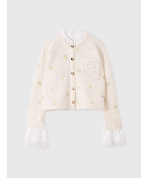 羽織るだけで完成する、優しいムード【Design】全体に繊細な小花刺繍を散りばめた、上品なカーディガン。胸元の“E”ワンポイント刺繍がブランドらしいアクセントに。さらに袖口にはレイヤード風の異素材デザインを仕込んでいて、1枚でスタイリングが完成する華やかさを叶えます。スタイルアップもできる、女の子の“欲しい”を詰め込んだ1枚。【Styling】デニムでカジュアルに、スカートでクラシカルに、どんなテイストにも馴染む万能カーデ。ボタンを留めてトップス風に着ても、羽織りとしても可愛く決まります。黒は大人っぽく、白は優しげなムードで、色違いで揃えたくなるアイテム。【Fabric】ふんわり柔らかなニット素材に、丁寧な刺繍で立体感をプラス。袖口の布帛コンビがスタイリングに奥行きを出し、シンプルになりすぎない仕上がり。軽い着心地ながら暖かく、季節の変わり目にもぴったりです。【Material】ニット部分:アクリル25% ナイロン24% 羊毛22% モヘヤ18% ポリエステル7% ポリウレタン4%布帛部分:ポリエステル90% 綿10%別布:<刺繍糸>ポリエステル100%手洗い可 ドライクリーニング可厚み:□薄手 ■普通 □厚手透け感:■なし □あり伸縮性:□なし ■あり裏地:■なし □あり注意:お使いのモニターによって、カラーが違って見える場合がございます。※素材・仕様は一部変更になる場合がございますので予めご了承ください。★《お気に入り登録》でお得な情報がいっぱい★・「商品のお気に入り登録」で再入荷通知や、ラストの通知、セール通知も受け取ることができます。・「ブランドのお気に入り登録」で新商品や再入荷など、お得な情報を受け取ることができます!【eimy istoire/エイミーイストワール】女性はみんな綺麗になりたいだからお洒落が大好きでやめられないそんな女性に贈る最高に美しい物語メーカー品番:1125611318