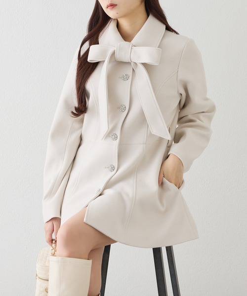 ~NICECLAUP 2026 Early Spring Collection~リボンが女性らしいシルエットを演出してくれるミドル丈コート。程よい丈感でバランスが取りやすく、パンツにもスカートにも合わせやすい万能アウターです。リボンは取り外し可能で、首元やウエストその日の気分やコーデに合わせてアレンジが楽しめます。きれいめスタイルにはもちろん、カジュアルコーデに羽織っても大人可愛い印象に仕上がります。■オススメスタイリングミニボトム×ロングブーツでコートを閉じてワンピースっぽく着こなすのがオススメ!冬はハイネックニットなども相性◎デニム×バレーシューズで合わせてパリジェンヌな着こなしも◎-------------裏地:あり伸縮性:なし生地の厚さ:普通生地の重さ:普通洗濯:ドライ-------------※サンプルでの撮影のため、実際のものと仕様や色が異なる場合があります。※室内、室外での撮影のため実際より明るく映っていたり、暗く映っていたりする場合がございます。※品質表示を必ずご確認下さい【商品のお気に入り登録】完売カラーの再入荷や、ラスト1点のお知らせ、セールの通知を受け取ることができます。【ブランドのお気に入り登録】新作入荷や再入荷情報など、ブランドの情報をいち早くお届けします。ぜひご登録ください♪2026SS