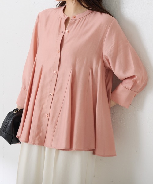 体型カバー&スタイルアップが叶う上品ブラウス 【POINT】 ・程よいツヤ感のあるシアー生地は品もありつつ抜け感も演出してくれます。 ・胸下辺りから裾に向かってマチの切替で体型カバーが叶います◎ ・胸下の切替がペプラムのようなデザインで脚長効果&ウエストの細見えも期待できます。 ・ややハリのある素材がマチのシルエットを綺麗にキープしてくれます◎ ・七分袖なので肌寒い時期から暑い時期まで着やすいです。 【おすすめコーディネート】 落ち感のあるスラックスやタイトスカートを合わせてきれいめにも、デニムと合わせてカジュアルにもおすすめです。 サーモンピンクのようなお色で肌なじみが良く、ジャケットやカーディガンに合わせた時にもワンポイントになります。 【おすすめのスタイリングアイテム】 ・ジャージワイドパンツ CLZ1061202A0002 ・Q.anos ストレートデニムパンツ CLQ5061103A0002 【素材】 レーヨン89%、ポリエステル11% 透け感:ややあり 裏地:なし 伸縮性:なし 光沢感:ややあり おすすめ着用時期:春、夏、秋 洗濯:手洗い可 ≪返品・交換について≫ ・着用後、洗濯後の返品・交換は致しかねます。 ・商品到着後、着用前に商品状態のご確認をお願い致します。 ・ECサイトでご購入いただいた商品は、お修理を承っておりません。 【気になる商品は「お気に入り」登録を】 ハートマークをクリックし、お好きなカラーを選んでお気に入りに登録すると 入荷情報や残り1点の通知、完売カラーの再入荷、セール情報などを受け取ることができます。 ※撮影場所やお使いのモニター環境により若干お色味が異なる場合がございます。 特にロケの撮影では明るく見える傾向にございます。詳細撮影画像で色味をお確かめくださいます様お願いいたします。 ※サンプルで撮影をしております。若干の仕様が変更になる場合がございますので予めご了承の上ご注文くださいますようお願いいたします。 ※サンプルでの採寸のためあくまで目安となります。予めご了承ください。