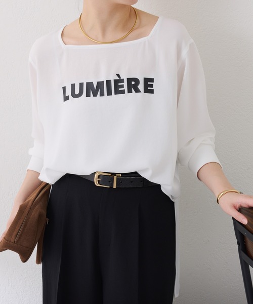 毎年人気のジョーゼットロゴロンTがブラッシュアップして今年も登場【POINT】・顔周りがすっきり見えるスクエアネックのロゴロンT。・ブラウス見えする軽やかなジョーゼット素材なのでカジュアルすぎない印象で着用いただけます。・落ち感がありゆったりめのシルエットは身体のラインも拾いにくく1枚着としても活躍します◎・袖はリブにしているので腕を捲りやすく、お仕事や家事の時にも便利です。【おすすめコーディネート】Vネックのニットやカーディガンのインナーとしても活躍します◎ニットの裾から少しインナーをチラ見せすることでメリハリのあるスタイリングになります◎ジャケット×スラックスでお仕事にも、デニムやデニムジャケットに合わせて大人カジュアルにも活躍します。【おすすめのスタイリングアイテム】・ジャージワイドパンツ CLZ1061202A0002・タフタタックパンツ CLZ1061202A0003【素材】本体:ポリエステル100% リブ部分:コットン96%, ポリウレタン4%透け感:ホワイト、レモンイエローあり裏地:なし伸縮性:あり光沢感:なしおすすめ着用時期:春、秋、冬洗濯:手洗い可≪返品・交換について≫・着用後、洗濯後の返品・交換は致しかねます。・商品到着後、着用前に商品状態のご確認をお願い致します。・ECサイトでご購入いただいた商品は、お修理を承っておりません。【気になる商品は「お気に入り」登録を】ハートマークをクリックし、お好きなカラーを選んでお気に入りに登録すると入荷情報や残り1点の通知、完売カラーの再入荷、セール情報などを受け取ることができます。※撮影場所やお使いのモニター環境により若干お色味が異なる場合がございます。特にロケの撮影では明るく見える傾向にございます。詳細撮影画像で色味をお確かめくださいます様お願いいたします。※サンプルで撮影をしております。若干の仕様が変更になる場合がございますので予めご了承の上ご注文くださいますようお願いいたします。※サンプルでの採寸のためあくまで目安となります。予めご了承ください。