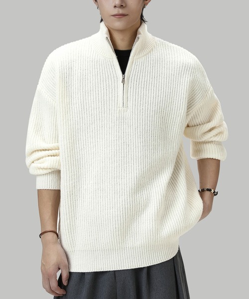 ~~着回し力と機能性を両立したジップニットが新登場!~~1枚で着こなしの幅が広がる、使いやすいジップニットです。バルキーな片畦編みでふんわりと立体感があり、ジップを開閉するだけで首元の印象を簡単に変えられます。■ 軽い着心地のボリューム ニット凹凸と立体感のある 畦編みでざっくりと仕上げた、ボリューム感たっぷりのニット。さりげなく高級感も漂うデザイン、ワイドで抜け感のあるビッグシルエットなので、羽織るだけで今っぽいストリートスタイルが完成。どんなコーデにも合わせやすい、“ちょうどいい存在感”の一枚です。■ポイント流行に左右されないシンプルなデザインで、幅広いスタイリングに合わせやすいです。ファスナーの開閉で首元の印象を簡単に変えられ、着こなしのバリエーションも広がります。しっかりとした生地の厚みがありながらも伸縮性に優れていて、ふんわりとした編地が空気を含むため保温性も抜群。寒い季節にぴったりの一着です。■コーディネートダウンジャケットやレザージャケットのインナーとしてはもちろん、オンブレチェックシャツを合わせた 韓国系ストリートスタイル もおすすめです。ボトムスは、バレル・カーブパンツ/ワイドデニム/カーゴパンツ/ジョガー/スウェットパンツなど、スポーツMIXや古着系スタイルとの相性も抜群。足元はスニーカーはもちろん、ローファーやブーツなどの革靴を合わせてもOKです。メンズ・レディース問わず、ユニセックスで着用できる万能アイテムです。【重要】※商品画像は、光の当たり具合やパソコンなどの閲覧環境により、実際の色味と異なって見える場合がございます。予めご了承ください。※商品画像はサンプルのため、色味やサイズ、素材の混率等の仕様に変更がある場合がございますので、予めご了承ください。TOBEE(トゥビー):スタイリッシュなデザインと快適さを兼ね備えたカジュアルウェアブランド。おしゃれを楽しみたいという男性に向けて素材選びから縫製まで、すべての工程においてこだわり、シンプルでありながらも個性を引き立てるデザイン。ファッションにおいて妥協することなく、「着ることで自分を表現する」というコンセプトで使いやすく、それでいてスタイリッシュなアイテムを提供します。★ 気になる商品はお気に入り登録がおすすめ・商品のお気に入り登録(ハートマークをクリック)お気に入りアイテムの完売カラーの再入荷通知や、ラスト1点の通知、セールの通知も受け取ることができます。・ブランドのお気に入り登録新商品や再入荷など、いち早くブランドの情報を受け取ることができます。※ご注文いただいた予約商品のお届け時期の確認は、注文履歴ページより行えます。
