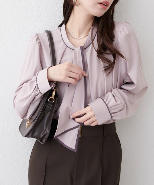 【2026SS natural couture】配色ボウタイ2WAYブラウス■Design上品な華やかさをもたらしてくれるボウタイブラウス。取り外し可能ボウタイで気分やシーンに合わせて違った印象をお楽しみ頂けます。衿元と袖口の配色でシンプルになり過ぎない嬉しいポイント◎オフィスにもお出かけにも使える万能アイテムなので一枚持っていて損無しです! ボウタイ部分はボタンで取り外し可能です。■Stylingブラウスがさらりとしている分、ボトムは厚みのあるアイテムを合わせて素材感にメリハリを付けるのがおすすめです。一枚で上品なアイテムなので、スカートスタイルはもちろん、デニムなどを合わせてカジュアルダウンするスタイルも◎■Fabricさらっとした薄手のブラウス地で秋冬の季節には上からジャケットやカーディガンを羽織っても、もたつかず着用いただけます。=========================お手入れ方法:手洗い透け感:淡色系あり裏地:なし伸縮性:なし光沢感:なし生地感:さらっとした生地感=========================※着用、お取り扱いの際は、商品に付いている品質表示とアテンションタグを必ずご確認ください。【お気に入り登録でお得な情報がいっぱい】・「商品のお気に入り登録」で再入荷通知や、ラスト1点の通知、セール通知をいち早く受け取ることができます。・「ブランドのお気に入り登録」で新商品や再入荷など、お得な情報を受け取ることができます!※店舗の入荷時期は商品によって異なります。店頭の在庫状況につきましては各店舗にてお問い合わせください。※撮影時の光の関係で、画面上の画像と実際のお色とでは若干の色差が生じる可能性がございます。また、ご覧いただいているモニター画面や、お使いのブラウザによっても、お色の違いがございますことをあらかじめご了承くださいませ。202512192026SS_natu26SS