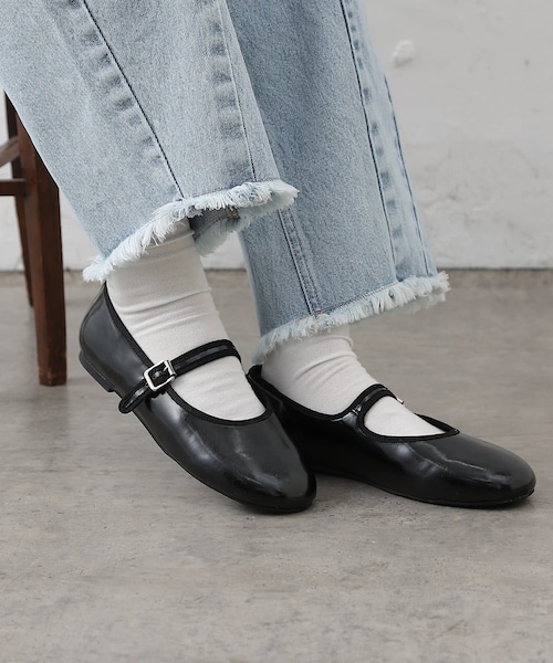 【メリージェーンデザインが目を惹くバレーシューズ】レトロなムード漂う丸みのあるトゥデザインに、メリージェーンのストラップが印象的なバレェシューズが登場。モードからカジュアルまで、幅広いスタイルで楽しめるのが魅力です。やや幅広のゆったりとした履き心地で、ストラップ部分は長さの調節が可能なのでフィット感があるのも嬉しいポイント◎フラットソールで歩きやすく、インソールも柔らかいので長時間のお出かけでも快適。メリージェーンデザインがコーディネートにほんのりエッジを添え、カジュアルなパンツスタイルからきれいめワンピースまで幅広くマッチする一足です。【商品ポイント】・調節可能なストラップで安定感のある履き心地・フラットソールで疲れにくく歩きやすい・コーディネートに幅広くマッチ・やや幅広でゆったりとした履き心地----------------------------------------------------■素材ブラック→アッパー:合成皮革、底材: 合成底ブラウン→アッパー: 合成繊維、底材: 合成底----------------------------------------------------※着用、お取り扱いの際は、商品についている品質表示とアテンションタグを必ずご確認下さい。※商品タグに記載されている商品名がWEBでの表記名と異なる場合があります。※実際の商品と仕様、加工、サイズが若干異なる場合がございます。※照明の関係により、実際よりもやや明るく見える場合がございます。またパソコンなどの環境により、若干製品と画像のカラーが異なる場合もございます。予めご了承くださいませ。【お気に入り登録】してお得な情報をCHECK!!・「商品のお気に入り登録」で再入荷通知や、ラストの通知、セール通知も受け取ることができます。・「ブランドのお気に入り登録」で新商品や再入荷など、お得な情報を受け取ることができます。