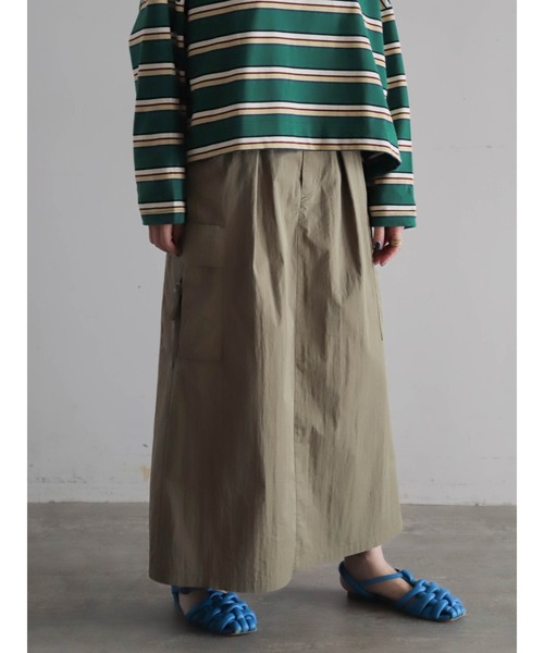 【FIL DE FER フィルデフェール】 2026 Spring Collection “ショート丈トップスと相性良し” ミリタリーなディテールながらも女性らしく着こなせるカーゴスカート。 アイコニックなサイドポケットのほどよいボリュームが、旬のショート丈トップスと好バランスです。 ウエスト後ろがゴムになっているイージー仕様。 サラッとしたナイロン混の生地で、暑い季節でもはき心地快適。 春から暑さの残る秋まで長く活躍してくれる一枚です。 洗濯:手洗い可 ※画像の商品はサンプルです。 実際の商品と色味、仕様、サイズ等が若干異なる場合がございます。 ※工場の生産の都合上、納期が変更になる場合がございます。 発送日の前後については予めご了承ください。