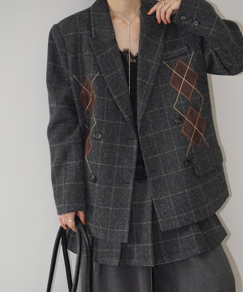 CHUCLLA director yuuki がセレクトしたブランド ""YOUYILIN""クラシックなテーラードに、アーガイルパッチでさりげない個性をプラス。程よくゆとりのあるシルエットが、カジュアルに取り入れやすいのも魅力。シャツにもニットにも合わせやすく、スタイリングの幅が自然と広がる一着です。セットアップのミニスカート(CHYOUW25a009)とのスタイリングもおすすめです。詳細補足仕様:フロントダブルボタン(内掛けボタンあり) / 前身腰ポケットあり / 胸ポケットダミー/ 肩パッドあり伸縮性:なし 透け感:なし 光沢:なし裏地:あり 厚さ:やや厚手サイズ感:普通~ややゆったりinstagram→chuclla_official取扱注意事項※サイズは、測定方法と測定者によって多少の誤差がありますのでご了承下さいませ。また体型によって、サイズ感に個人差がございます。(平置き採寸)※商品によってはシワがつきやすく、畳みジワや折りジワなどが強く出る場合がございます。その際は加湿した風呂場に数時間干すか、スチームアイロンでのお手入れをお勧めしております。※生地の素材上、においが気になる場合がございます。その際は陰干しして頂くと、ほとんど感じにくくなります。※レース等の繊細な素材を使用している場合には、お取り扱いにご注意下さい。※デニムを使用した製品は、インディゴ染めをしています。汗や摩擦により移染しやすいので、白色、淡色の組み合わせや重ね着はお避け下さい。※ニット素材を使用した製品は、重みで伸びやすくなりますのでハンガーでの保管はお控えください。※お洗濯の際には、品質表示の指示に従ってください。必要であれば専門店にご相談ください。家庭でご洗濯できる商品に関しては、洗濯専用ネットをご使用の上、個別での洗濯をお勧めいたします。お色物は、色移りする可能性がございます。※着用画像は撮影状況や光によって、多少異なる場合がございますので、置き画像をご確認下さい。※2023年7月1日より、環境に配慮した取り組みの一環として、紙のアテンションタグを廃止しております。