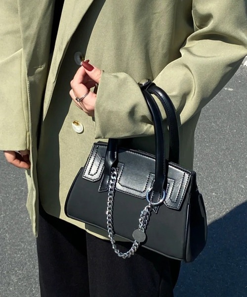【モードでかっこいい2WAY チェーンデザインハンドバッグ】 レザーライク素材に、存在感のあるチェーンとシルバープレートをあしらった、モードな雰囲気の2WAYバッグ。 ハンドバッグとしてもショルダーとしても使える、コーデを選ばない万能デザインです。 しっかり収納できるサイズ感と、洗練されたシルエットで、デイリー使いからお出かけまで大活躍。 シンプルコーデに合わせるだけで、こなれ感のあるスタイルに仕上がります。 モード&クールな印象で、持つだけでスタイリングが格上げされるアイテムです。 詳細補足 開閉:ファスナー 内ポケット:ファスナーポケット×1 A4収納:不可 ショルダーストラップ:取り外し可能 / 長さ調整可能 【c.u.l】 ▼お気に入り登録をおすすめします▼ お得なセール情報や、人気完売商品の再入荷情報 ラスト1点の通知など、耳寄りなお買い得情報をいち早く受ける事ができます。 ブランド【c.u.l】のお気に入り登録もご一緒にお願い致します。 ■取扱注意事項■ ※サイズは、測定方法と測定者によって多少の誤差がありますのでご了承下さいませ。 また体型によって、サイズ感に個人差がございます。(平置き採寸) ※商品によってはシワがつきやすく、畳みジワや折りジワなどが強く出る場合がございます。 その際は加湿した風呂場に数時間干すか、スチームアイロンでのお手入れをお勧めしております。 ※生地の素材上、においが気になる場合がございます。 その際は陰干しして頂くと、ほとんど感じにくくなります。 ※レース等の繊細な素材を使用している場合には、お取り扱いにご注意下さい ※デニムを使用した製品は、インディゴ染めをしています。汗や摩擦により移染しやすいので、白色、淡色の組み合わせや重ね着はお避け下さい。 ※ニット素材を使用した製品は、重みで伸びやすくなりますのでハンガーでの保管はお控えください。 ※お洗濯の際には、品質表示の指示に従ってください。必要であれば専門店にご相談ください。 家庭でご洗濯できる商品に関しては、洗濯専用ネットをご使用の上、個別での洗濯をお勧めいたします。 お色物は、色移りする可能性がございます。 ※着用画像は撮影状況や光によって、多少異なる場合がございますので、置き画像をご確認下さい。 ※2023年7月1日より、環境に配慮した取り組みの一環として、紙のアテンションタグを廃止しております。