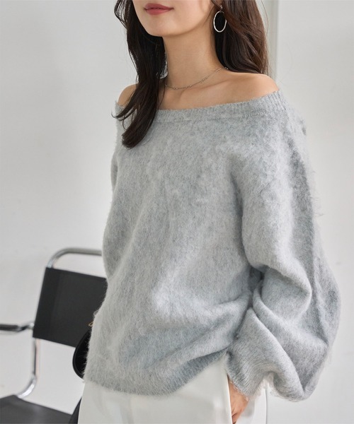 色っぽさあふれるオフショルダーニット。ふわふわなモヘアタッチの素材感が女性らしくレディさ引き立てる一枚。ネックラインを美しく魅せ、ボートネック、オフショル、ワンショル、幅広い着方を楽しめます◎【素材・サイズ感】軽くて柔らかいモヘア風ニット。モフモフの生地感が見た目にも温かくシーズンライクな表情に。ゆったりとしたサイズ感でリラックスした着心地を叶えてくれる大人フェミニンなロングスリーブニットです。【STAFFコメント】フワフワのシャギー素材が大人可愛いオフショルニット。ワンショルダーでも着用できる2way仕様です。シンプルなベーシックデザインで着回し力も抜群◎見た目もあったかいかわいい雰囲気をまとえるのでクリスマスデートにもおすすめ♡普段のお出かけから特別お洒落したい日まで、デイリーに使えて活躍すること間違いなしの長袖ニットプルオーバーです。《KOBE LETTUCE ー神戸レタスー》 プチプラレディースファッションからコスメまで、トレンドアイテムを豊富に取り揃えております。 毎シーズン発売されるインフルエンサーとのコラボ商品はSNSでも話題に。