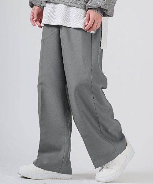 【上品と快適さを両立、きれいに決まるイージーパンツ。】上品な光沢感とハリを持つポリエステルツイル素材で仕立てた、ワイドシルエットのイージーパンツ。センタープレス入りで脚長効果があり、カジュアルながらもきちんと感を演出します。ウエストはゴム&ドローコード仕様で、快適な履き心地と調整のしやすさを両立。デイリーからオフィスカジュアルまで、幅広いシーンで活躍する一本です。■ 楽な穿き心地のイージーパンツ仕様ウエストはゴムシャーリング仕様で、リラックス感のある穿き心地です。またドローコードが施されているので、ウエストをお好みのサイズ感に調節できます。楽な穿き心地でリラックスシーンにもぴったりなアイテム。■ トレンドのルーズシルエットゆったりとしたリラックス感のある着こなしが魅力のイージースラックス。ゆとりのある幅感やドレープ感で絶妙にルーズな雰囲気を演出できます。存在感を発揮でき、トレンド感溢れる抜け感のあるコーデが完成します。■ 悩まず決まる無地ボトムスコーディネートが苦手な方でも、合わせるアイテムを選ばない万能アイテム。流行に左右されにくく、季節や年齢を問わずに着回せます。シンプルだからこそ、バッグや靴、アクセサリーなどのポイントアイテムを際立たせられます!■ ユニセックスアイテムキレイめ、カジュアル、韓国系など幅広いスタイルにマッチする万能さ。メンズ・レディースを問わない男女兼用で使えるユニセックス商品で、プレゼントにもオススメ。ペアやカップルコーデのお揃いにも最適で、家族でシェアしたりと幅広く活躍!